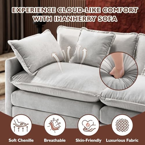 Transform your living space with our Cloud Couch, exquisitely wrapped in premium chenille fabric that is both skin-friendly and breathable. The thick cushions, crafted from double-layer high-elastic sponge and fluffy fill, provide unmatched comfort, making you feel as if you’re resting on a cloud. Experience ultimate relaxation with its plush design, perfect for lounging after a long day.